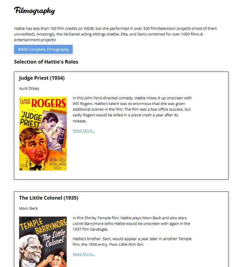 Go to HattieMcDaniel.com →Hello! My name is Katie Ayres, a web developer, who had the joy of building HattieMcDaniel.com back in 2020, and I’ve been happily keeping it running ever since. Hattie McDaniel wasn’t just a Oscar-winning star—she was a force.